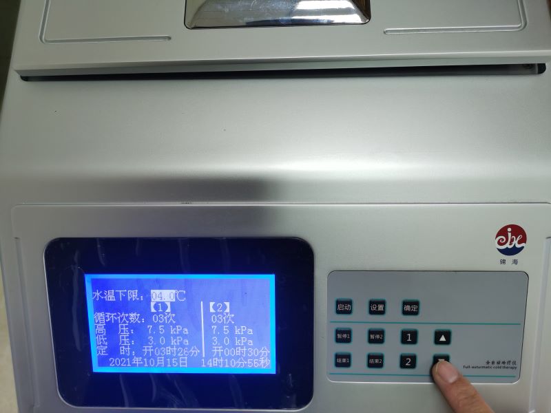 總結:在運行中可以根據病患的需求對溫度和壓力進行調節,設置保存后,全自動冷療儀會在全新參數下運行治療并將參數記憶,下次開機一鍵啟動,不用再重復修改參數。